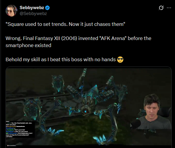 >>733666534It plays itself and in FF12 vanilla it didn't play itself for many hours until you unlocked useful gambits and there was no fast forward, meaning it was just slow as fucking balls and boring as hell.It was just bad all around. It's kinda fun when you fast-forward the game in the same way autobattlers are fun, just mindless sound effect jingles with an illusion of progress.