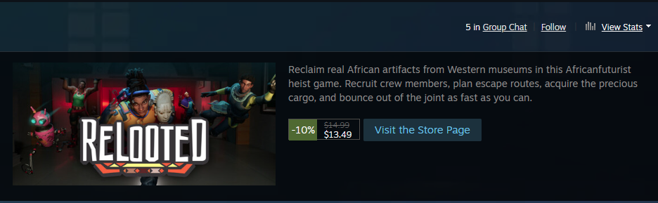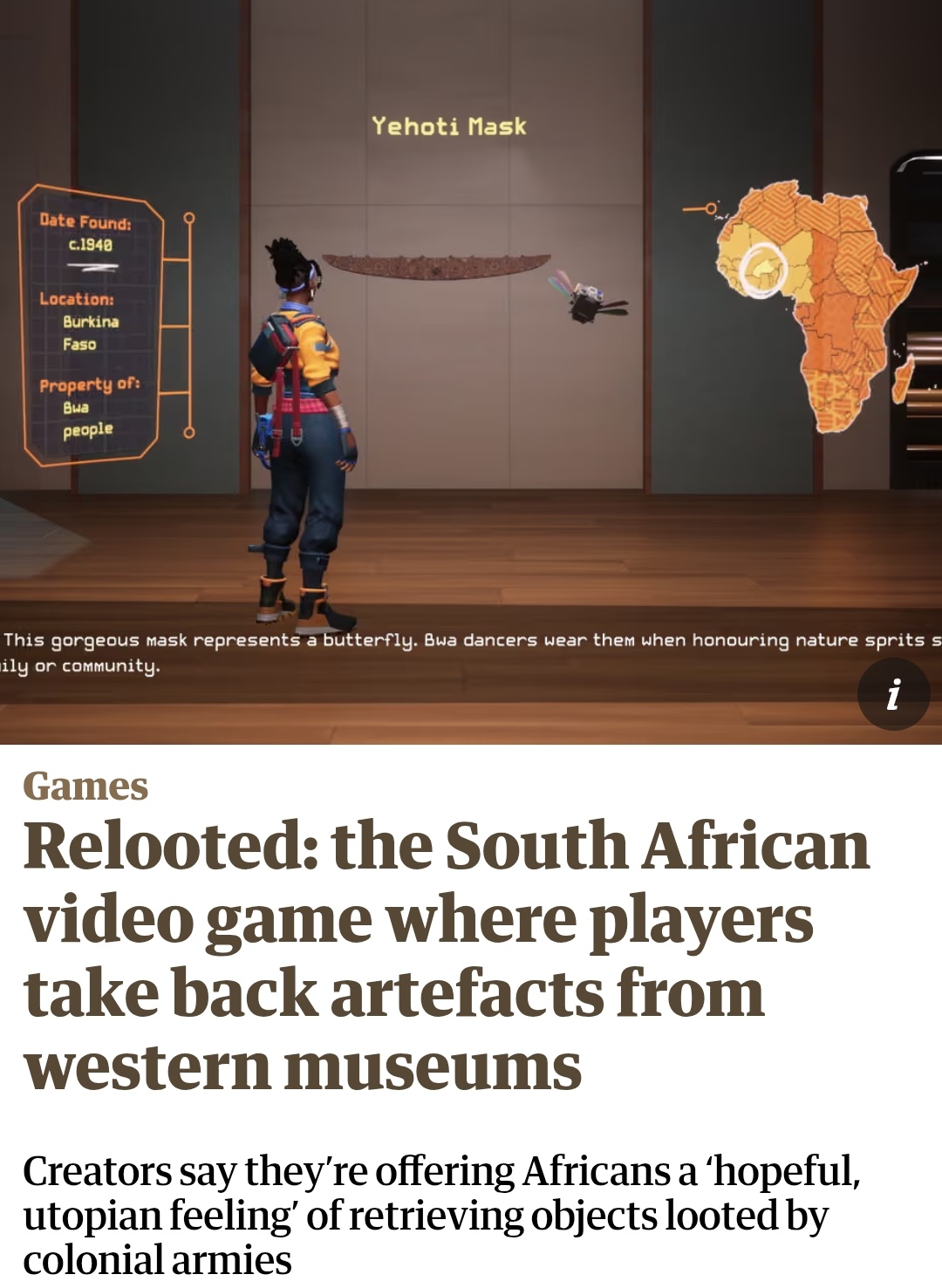 So there's now a video game where you play as an African, taking back artefacts from Western museums. Thoughts?