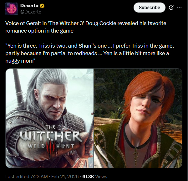 >>733645779Well they revealed the next Witcher and it's entirely fanfiction on UE5, with a fanbase darling now a frumpy independent career woman who don't need no man. Loud as they are, contrarians predditors and twitter activists, the bias speaks through mass consensus and it says noone really likes Karen Cirila.Fun trivia: TW4 ciri looks like Joe Wyatt did when she was voicing ciri in tw3.
