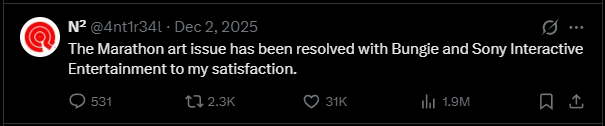 >>733657167You might have had a point... if the creative director wasn't following xer on Twitter and also if literal copy pastes of the artist's work hadn't been found inside Marathon.