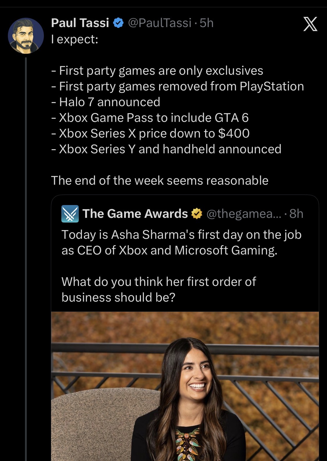 Put all the subscriptions into gamepass to bloat the value of it without actually making it any better directlyBanjo Kazooie remake or sequel with all the original leads (playtonic is desperate for money and the stamper bros can be brought in cheap)