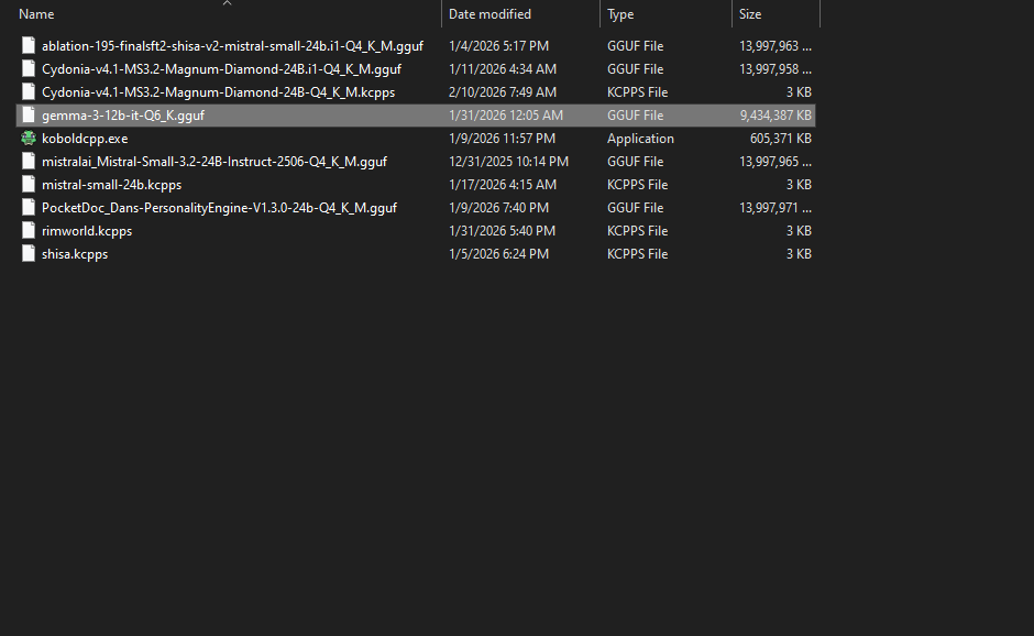 >still using some old ass 13b q4 model from two years ago because all the other models that fit on my GPU are worse even to this daynemomix my beloved