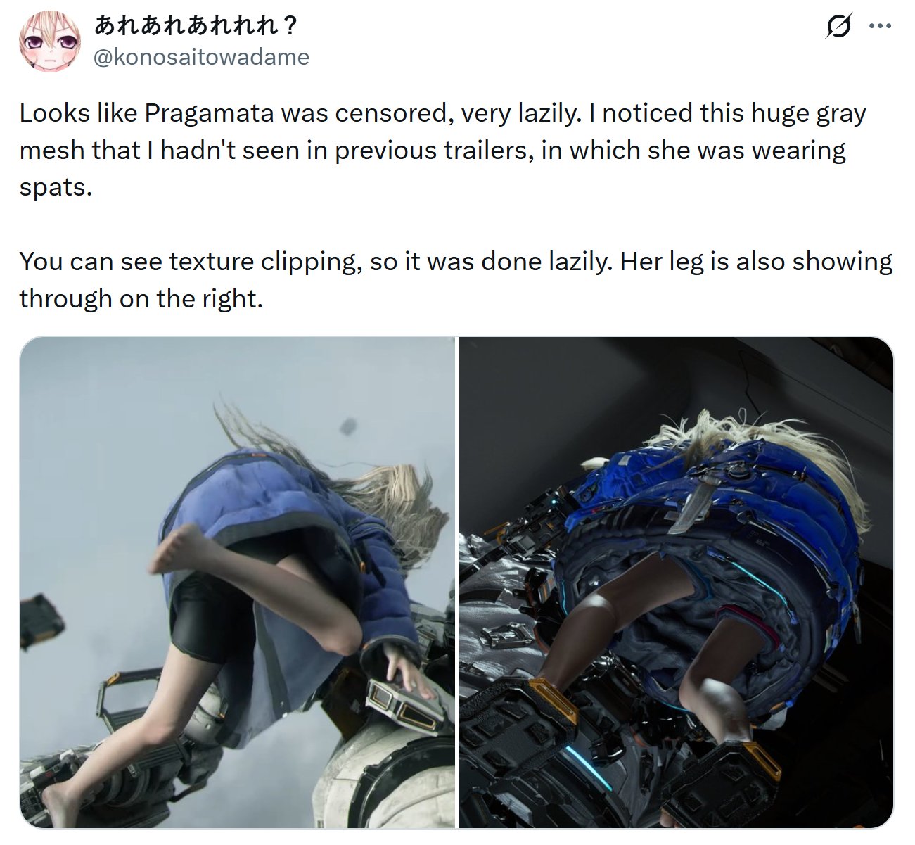 >>733674313To be fair, her entire outfit looks very different, not just the upskirt. They made it a lot more mechanical looking. It's also canon that she's completely naked under the suit.