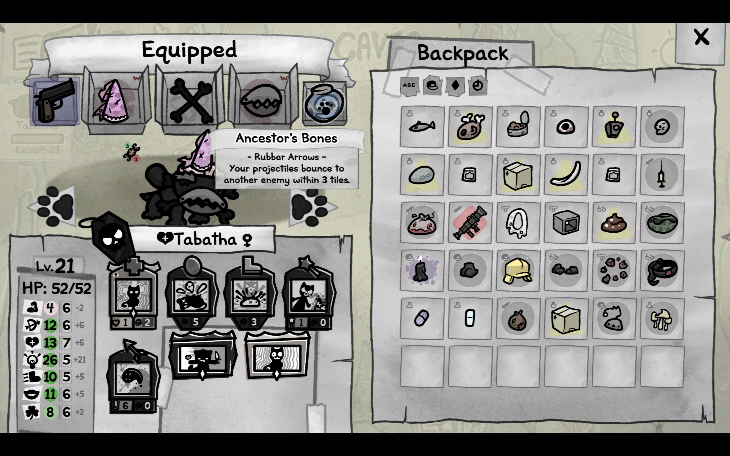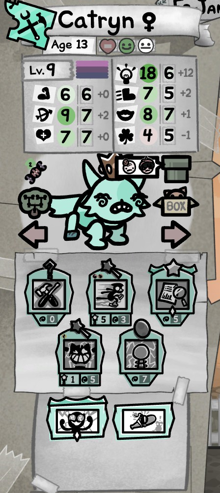 >>733680194You can influence the outcome (sort of) using the skill check's base stat, but if you walk over a ? with blood frenzy and no stat roll it will give you blood frenzy regardless of who you put in the box. Tested using the start of day save before even putting cats in the box. How much the stat influences the stat check needs to be tested further, but your run is more or less already predetermined in some way. You'll get the same events, items, level up skills, battles.