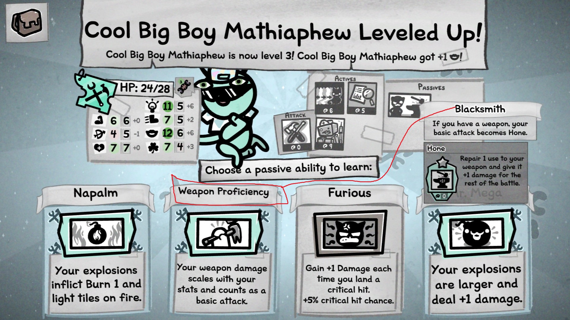 Anons help. I think this might be insane or completely brick my current thing.I got a Shotgun+teleport Plus Blacksmith which lets me basically do (5)X damage if I am adjacent. So I can get get shitloads of damage and repair my usages, plus two usages due to a trinket.What does THIS passive do if my current one changes my basic attack to Hone which is whats making this shotgun shit work near infinitely.