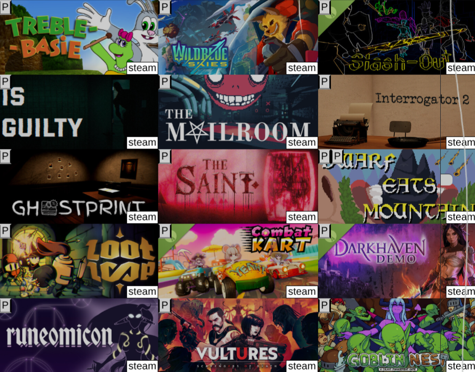 https://store.steampowered.com/app/4356700/SlashOut_Fantasy_Dueling_Demo/>Slash-OutGood shit! Punch Out clone with neon knights. Really fun and some good creativity with the mechanics. I highly recommend rebinding shield bash to RB, switching quickly from LT to LB was quite awkward for me.