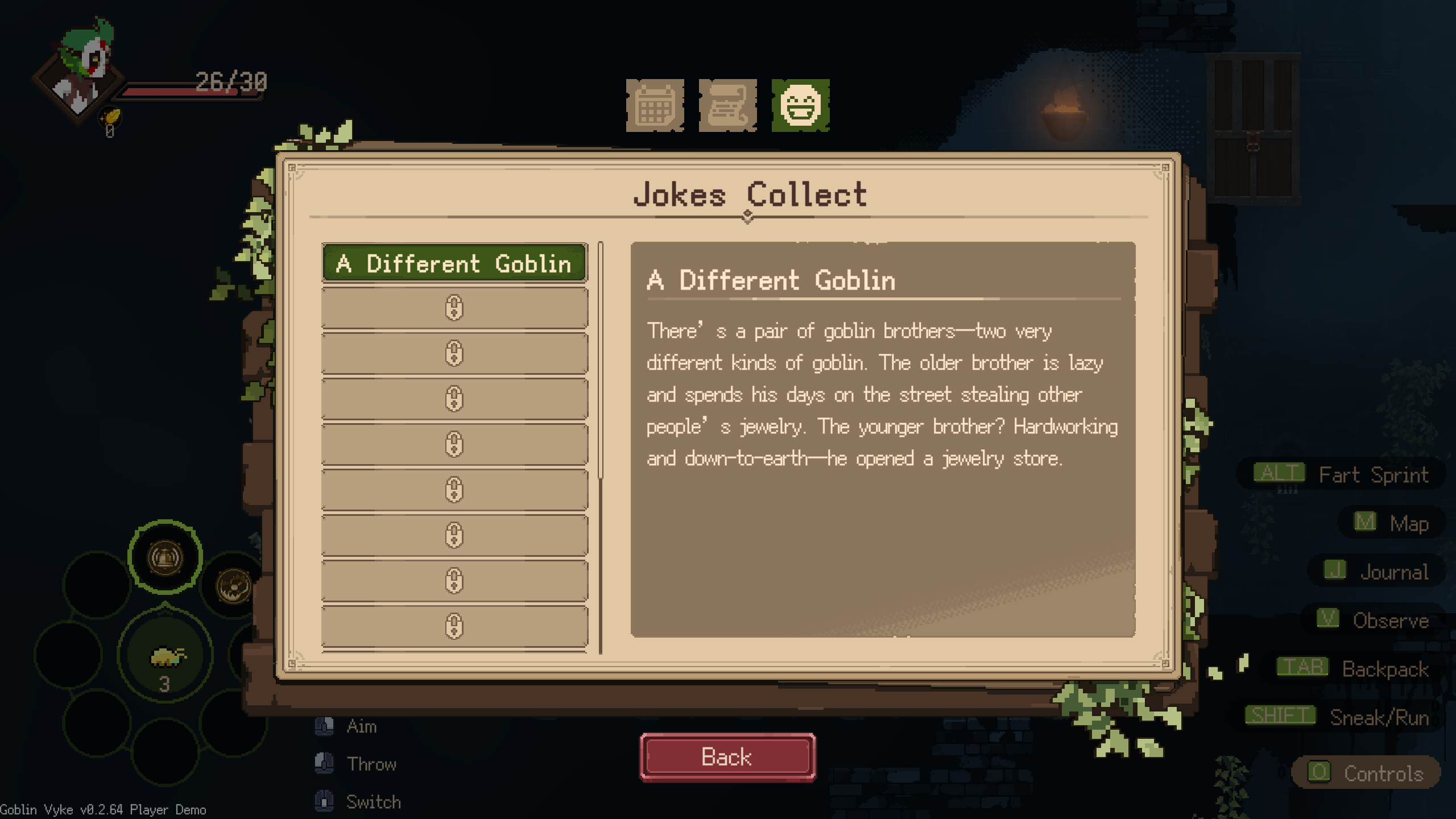 https://store.steampowered.com/app/3794610/Goblin_Vyke_The_Thief_Tycoon/Goblin chads, I enjoyed this more than expected. Stealth rarely does it for me, but the charming writing aesthetic and metroidvania setup works well. Can also book your ass out of danger when shit goes bad with even just the double jump upgrade. Should be a lot of fun as you get more tools.Can't really comment on the sales part yet, not sure if that will have depth eventually.>>733693147Holy shit. Build 0.0.1 is impressive too
