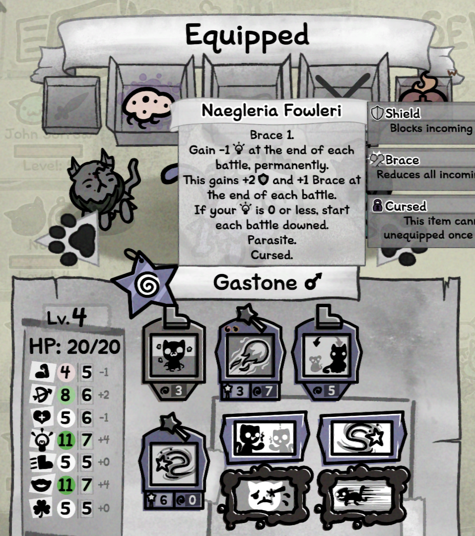>>733682928You get that when you lose a cat and get a replacement in a run, in which case it's smart to keep it on the new cat, since it will be much weaker no matter what, and also upgraded skills and passives can be really huge instead of a having a fourth cat that is limping along.You can also use it for the side quests where one of your cats will be a dead weight, like princess or angry mask, so you don't need to waste level ups on them.