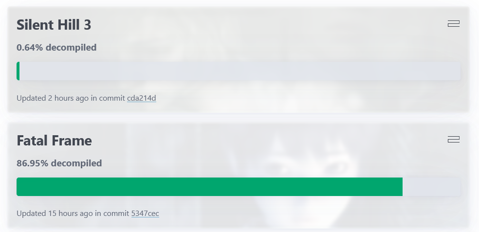 >>733695960Yes the source port will have proper full 3D support, rather than the half-support that the PS has. Someone started one for SH3, which is nice because 2-3 has major shadow glitches that are engine level. This would create a new PC port.There's also a much farther along Fatal Frame one, and they've gotten the PC port to boot. It doesn't load character models, but it does load levels and 2D elements. Characters look like hunks of Tofu.