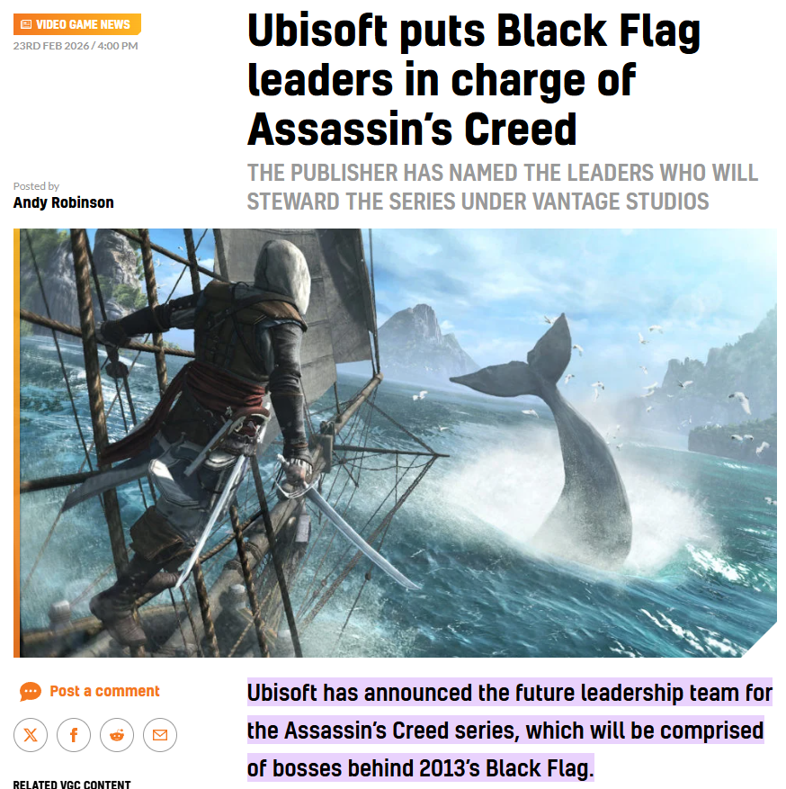 >Black Flag was a game that was universally loved DESPITE being a AC game>Now these guys are put in Charge for the future of the series This series is so fucking lost