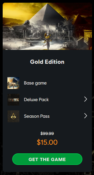 >>733705517>if you aren't eager to use the stuff the Gold edition throws at you.I don't think you understand. All the Gold Edition gives you is one DLC pack and the season pass (Which you should just Cheat Engine in the rest of if you're on PC). It doesn't give you upgrade packs. You should not be able to assassinate anything unless it gives you Hidden Blade upgrades because if your HB is underleveled it can't one-shot even if the enemy is under your level. How are you assassinating enemies if they're level scaled?