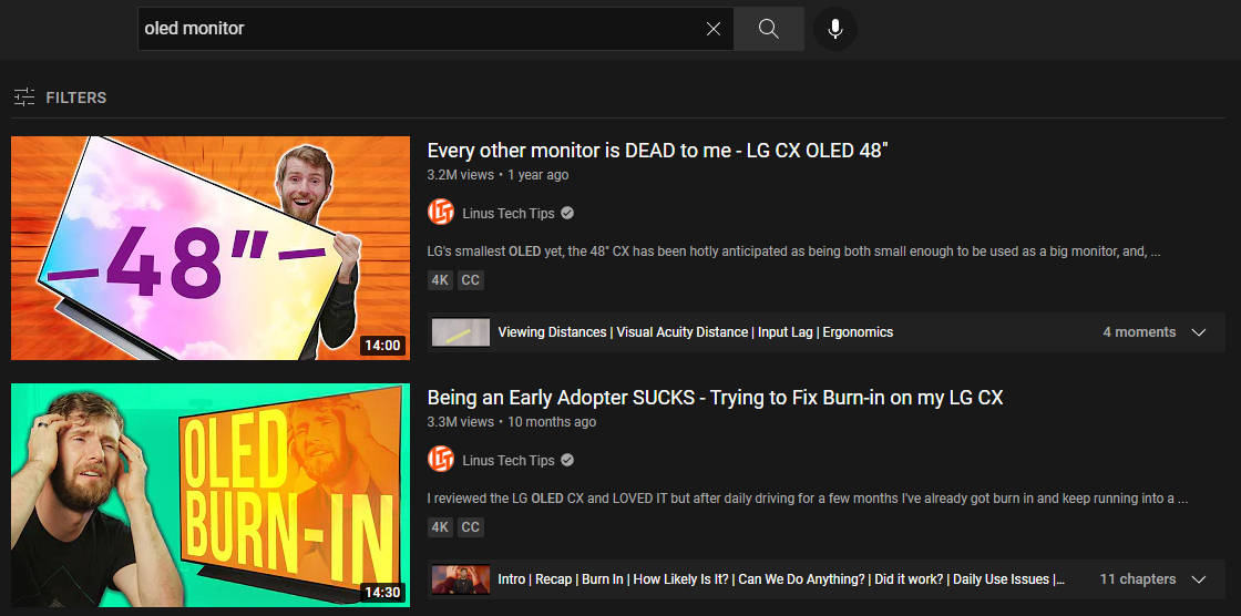 >>733687660My think my dad got the same oled tv. He said some parts burned on screen and he has now browser logo and some texts burned/visible all the time.