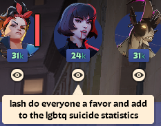 >>733741828oops silver caught someone who doesn't know to do all this unaware and because she LITERALLY always has ult up she killed them before I could even begin to rotate, now she's got enough of a money lead on me it doesn't even matter if I counterbuy her or notthis isn't a fucking 1v1 fighting game where "just learn the matchup bro" is real advice
