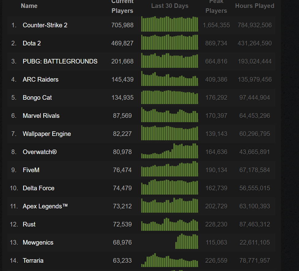 >>733696016>>733694031Still #14 on the steam charts