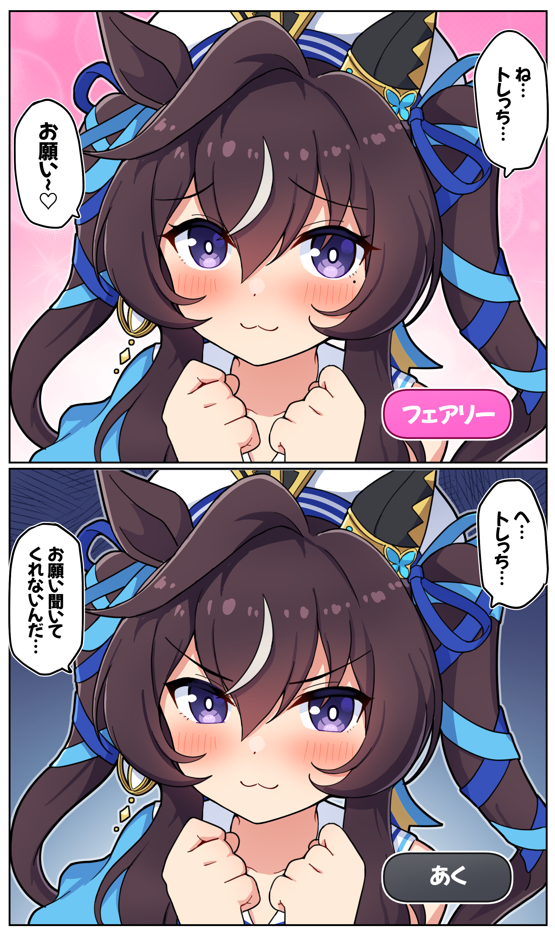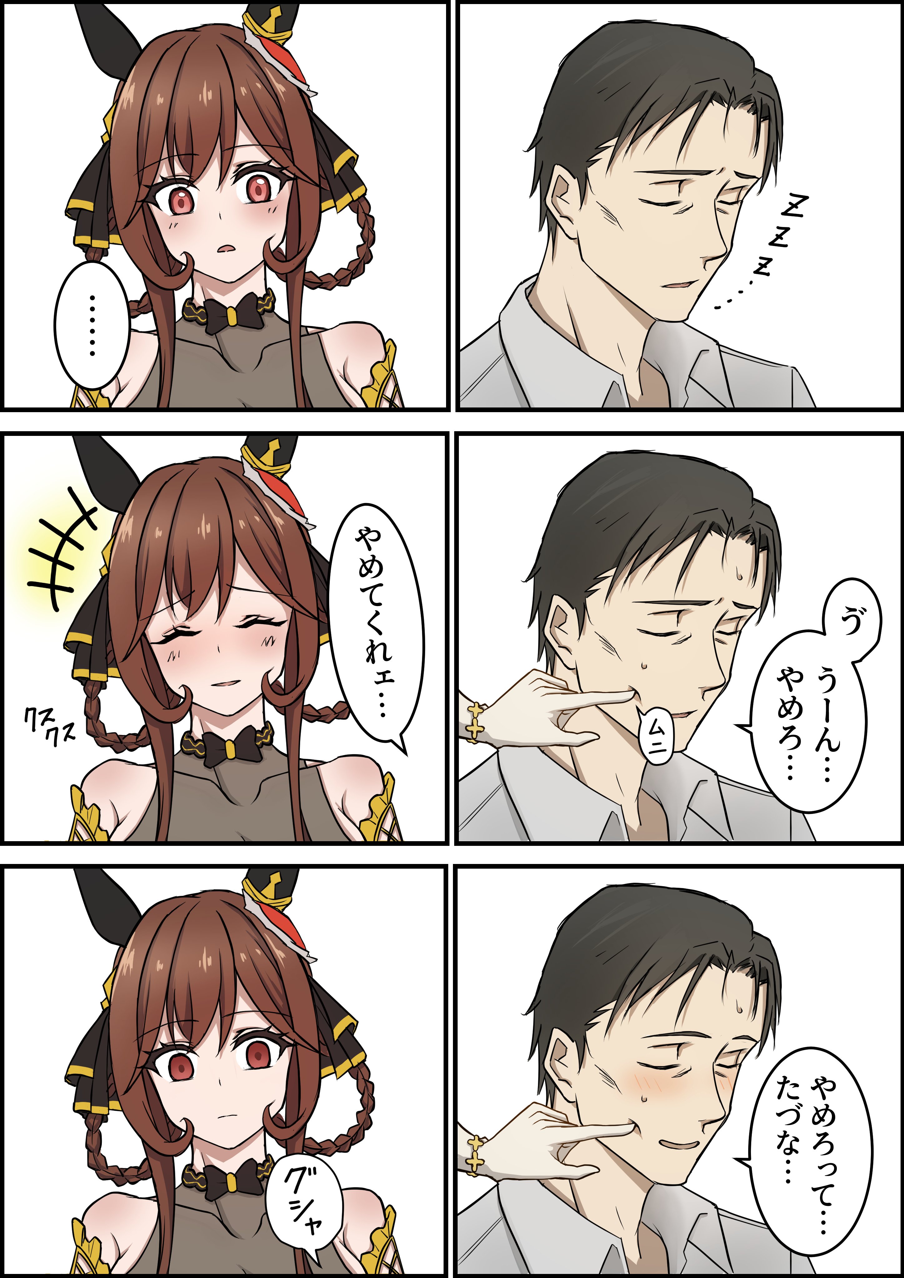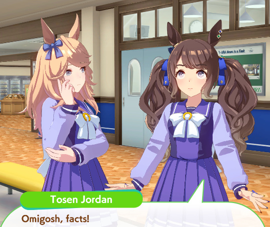 >>733702593In her character story you are not her trainer yet, but she immediately invites you overseas to accompany her get revenge on an uma that makes her lose. She is a sore loser at max value.