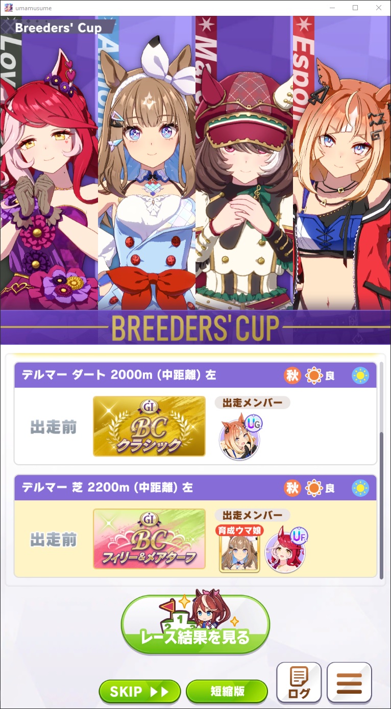 >>733701863Not that guy but the scenario's scope is just too big to have a concrete set of rivals. We get like 7 BC races to compete on short/mile/mid and turf/dirt instead of just a single race like the Arc.