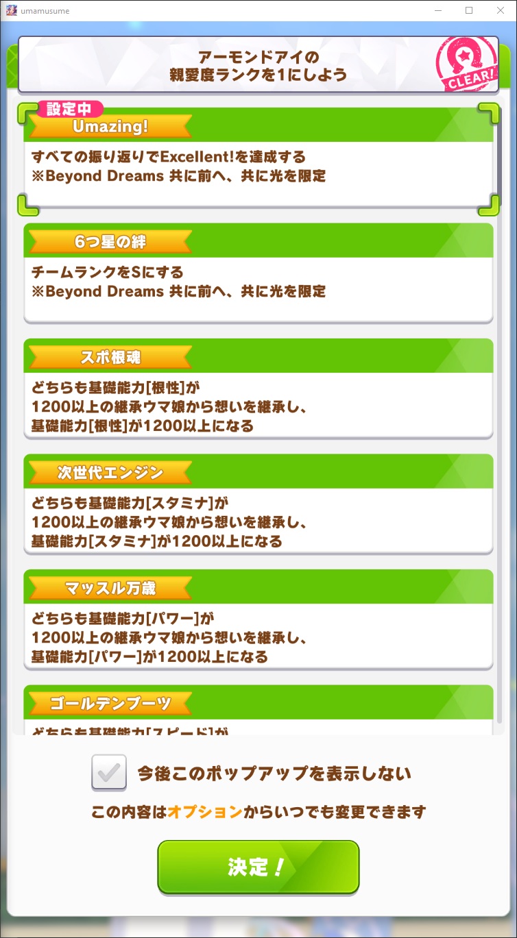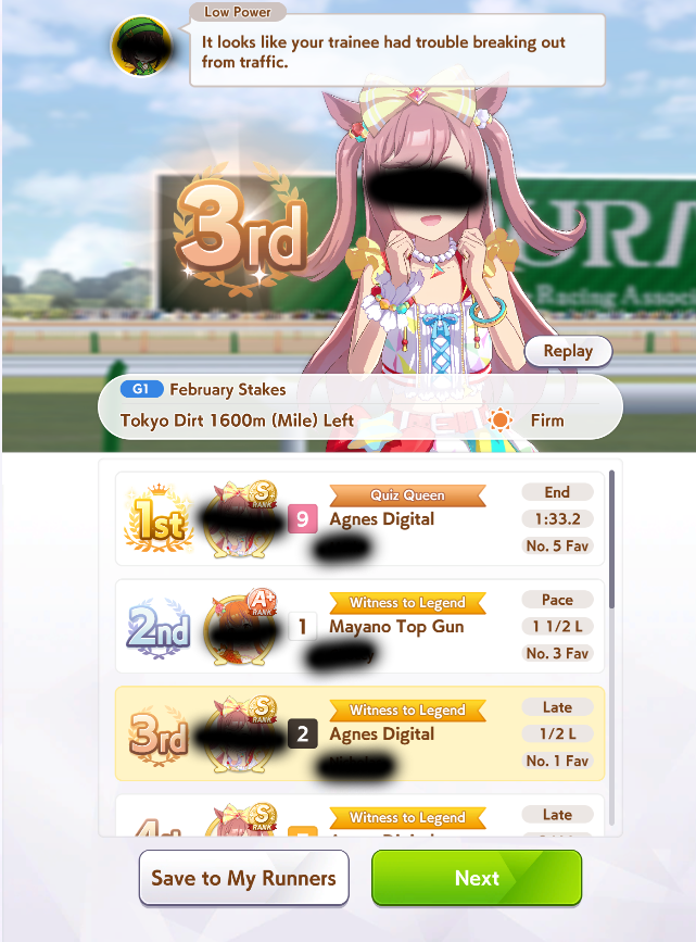 >>733697570>>733697582I can't really tell since I'm currently on full skip mode to get and feel of the scenario first so that I can get quickly get back to work.My nips also isn't at the level good enough to read the story either.>>733697678Don't know if it's because of the new scenario or not, but for now she's steamrolling over everything. Also it's strange how she only has Oaks as the only mandatory triple tiara tour as her goal.