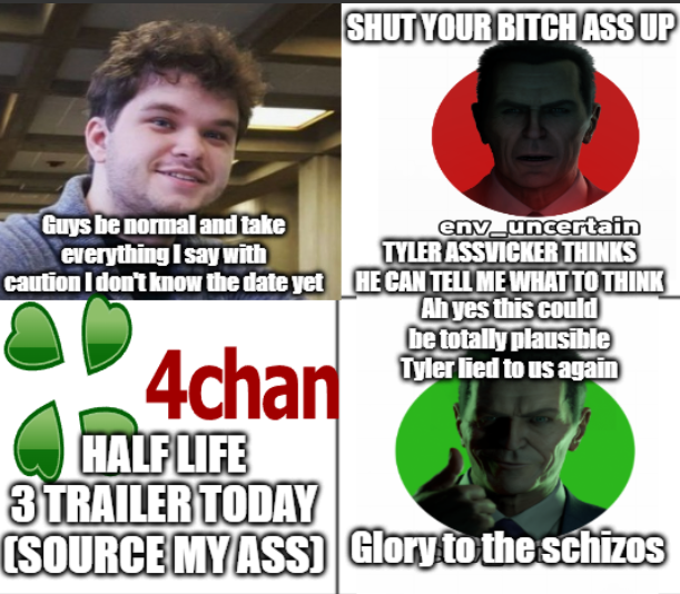 >>733719958TLDR:famous valve "leaker" promised half life 3 in novermber. then said its going to launch along side the steam machine.neither are true. half life fans are on the brink of suicide (again)