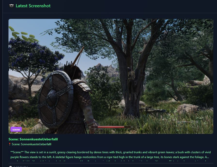 >>733725578some of them can be rather racist lol. Some of the voice gen is what gives the delay, at least from my experience. Sometimes its pretty quick with the response, but yeah sometimes itll hang. this is a screenshot from enderal for anyone curious to know how it "sees". it takes these screenshots every few seconds and purges them after a while