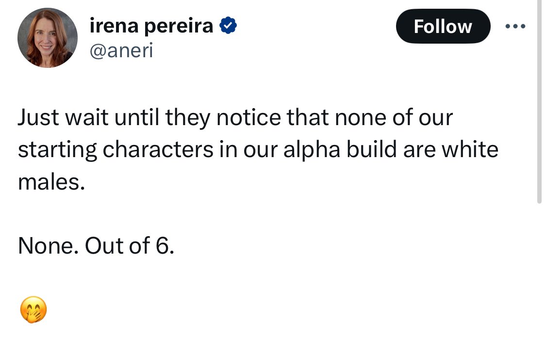 >>733711301I don't want a game who all talks about being "non-woke" I just want a good game
