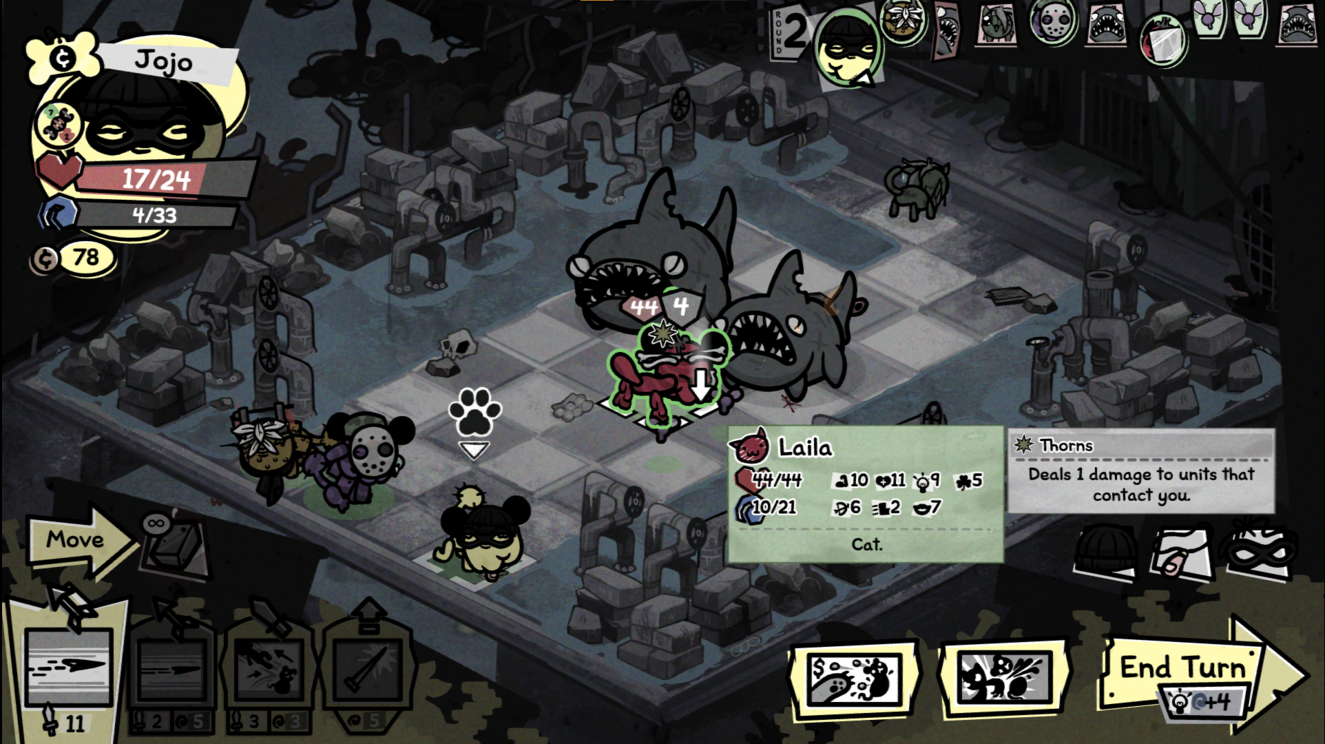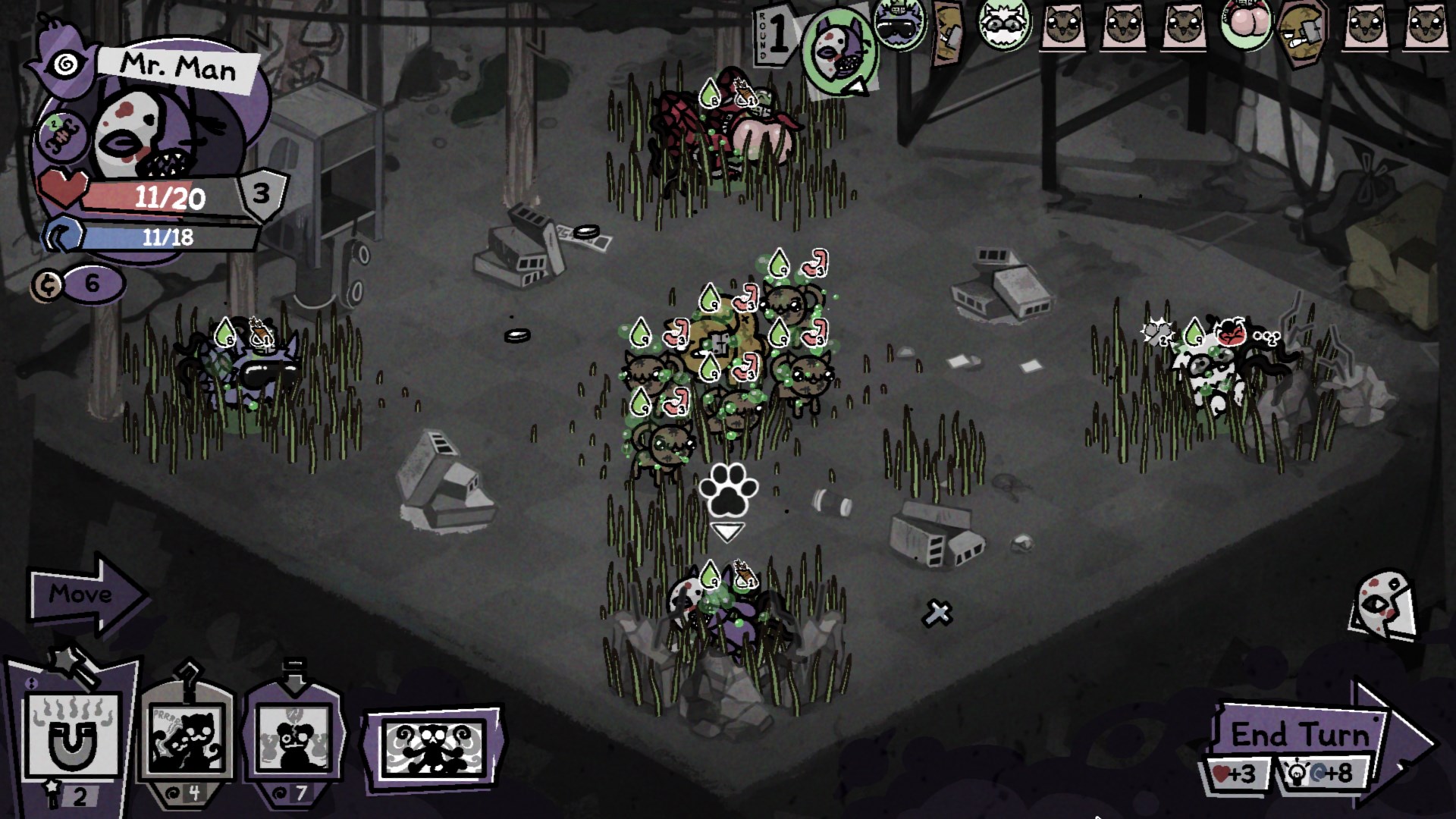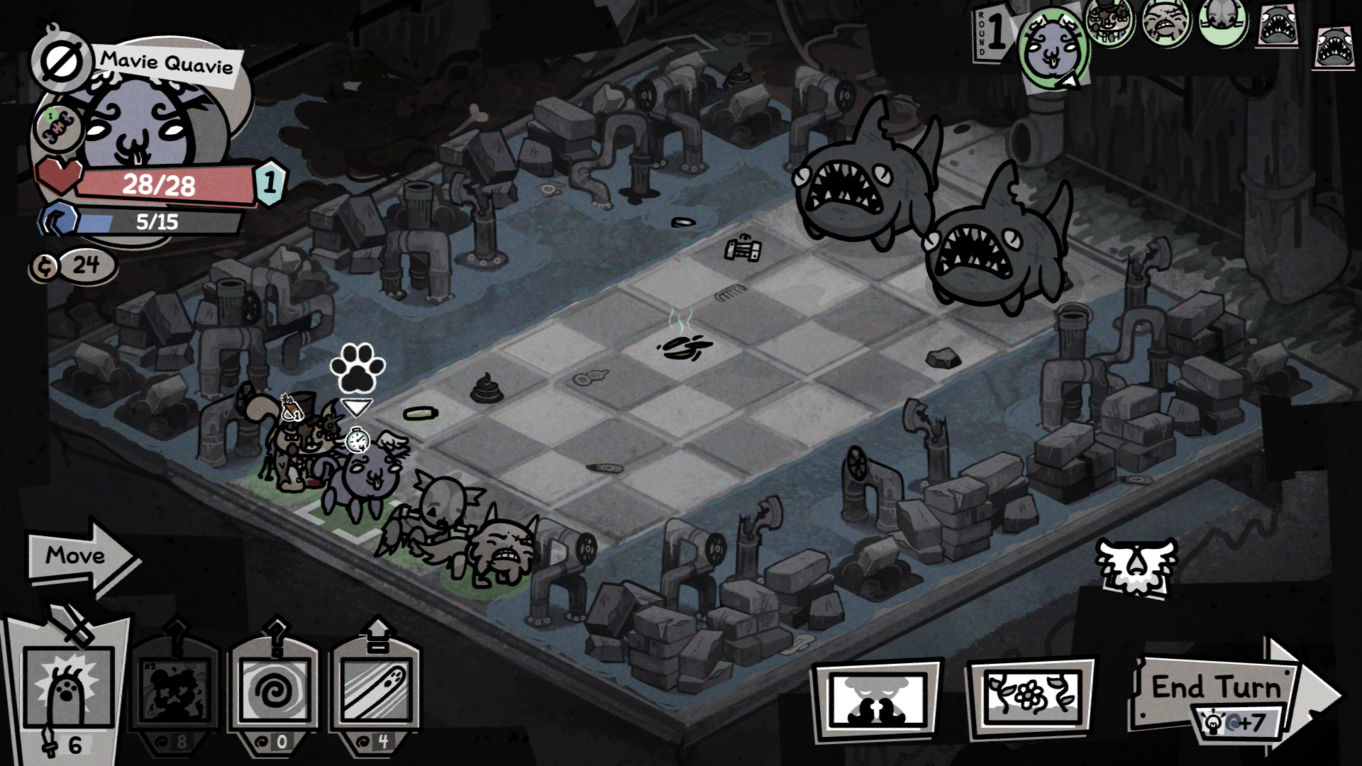 >>733713804You just hit the enemies really hard and cheese it with choke points.It's incredibly fucking stupid how the sharks get like 80 turns, btw. I was doing a 3 cat run and by the end of my first turn after I had attacked once literally every single one of my cats had at minimum bleed 6 (and of course because of infestation my fighter immediately died when he passed out).Shit game. What "strategy" was supposed to save a cat on his own on the wrong side of the room from sharks with 40 total movement and 8 actions