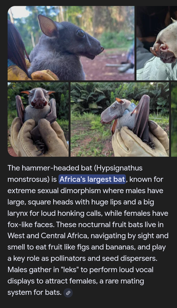 >>733733826>African bat>known for its large males with big lips who make lots of noise hollering after bitches