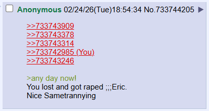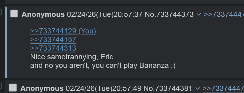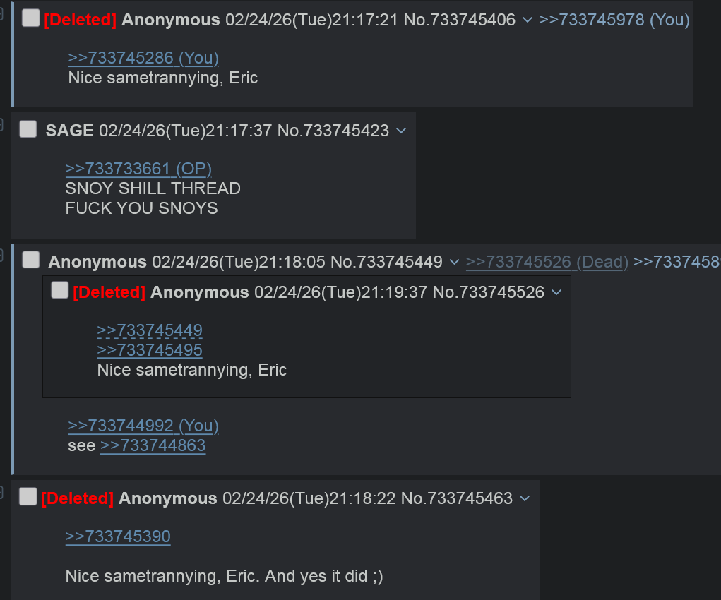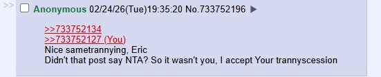 >>733750818>>733750894Nice sametrannying, Eric