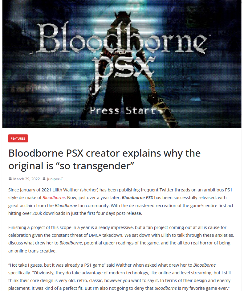 It's still the best Soulsborne game of them all and that includes Sekiro and Elden ring.
