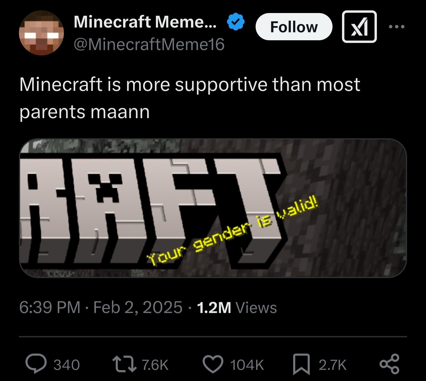 >>733752120>video games as mainstream as minecraft now compromised and use faggot grooming nomenclature>"uhhhh why do you care?"