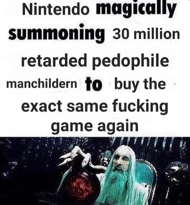 >>733778993>faggot nu-DK>eye skin flap nu-Diddy>faggot nu-Link>real Link named "Classic Link">nu-Zelda>bara nu-Ganondorf>ugly furfag totk goat>keeping Robin and Byleth>ring fit over wii fit>generic monster hunter>keeping echo shit>literal who over Louie or even a fucking bulborb as second Pikmin rep>tarnished>more nu-Fire Emblem>ugly ass hag Chun-Li>3 Monolith in base roster yet needs another one as DLC>guilty gear>deltatroon>fucking jigglypuff, Ike, Falco, etc as DLC>keeping shit like JokerThanks for posting the image so I don't have to waste time watching his gay video.Sakurai, I will never buy the game if you put anything of the above into it.