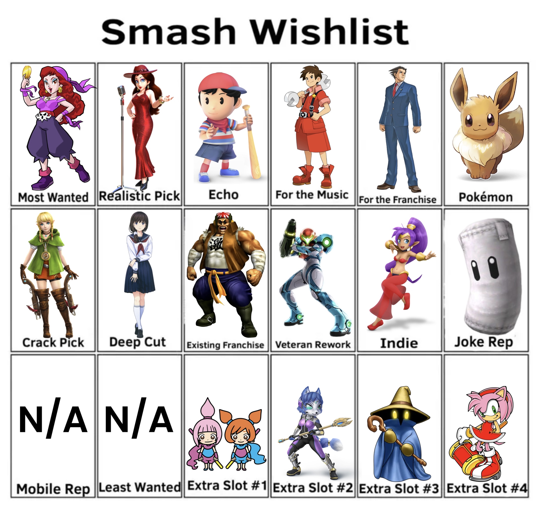 >>733780365Brawl was perfect, only Tom Nook and Mewtwo were missing.