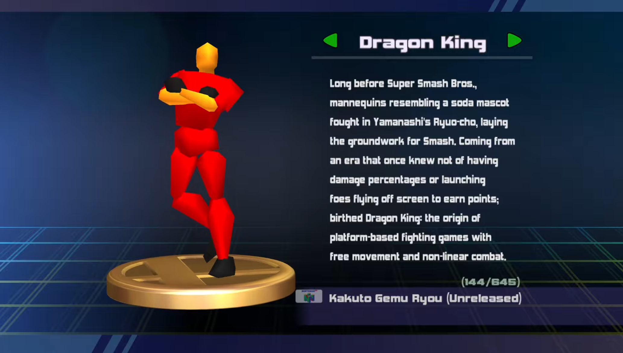 >>733758203Trophies were cool because stuff like your pic didn't have 3D models before. They lose their appeal when they're just copy/pasted from whatever game they were from. Or worse, those sprite ones in 4.