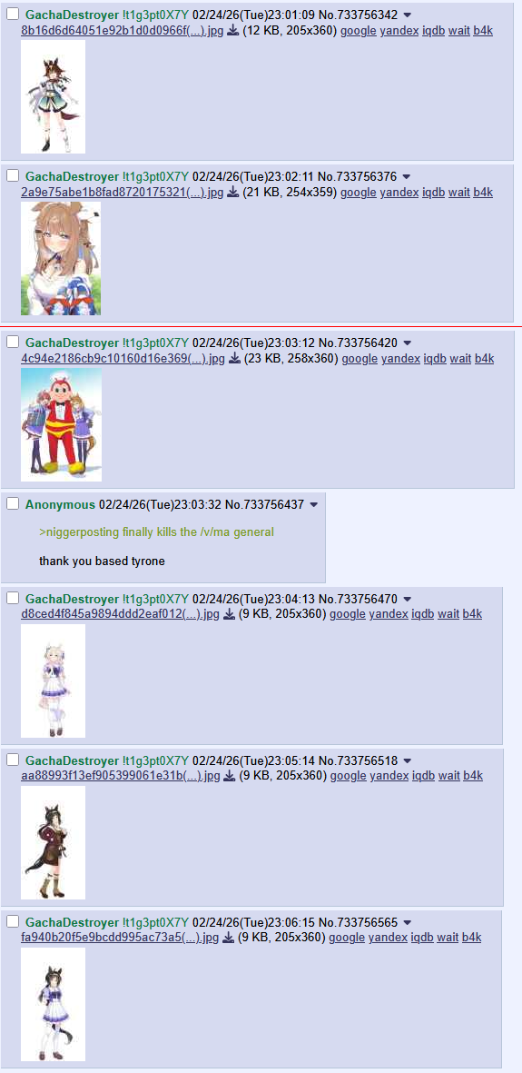 >>733751848Blame the obsessed retard mod who spends HOURS of every single day singling these threads out for harassment while the rest of the trash piles up because he cannot STAND a VIDEO GAME about anime racing horse girls being on HIS board.He literally goes out of his way to cause problems on purpose.