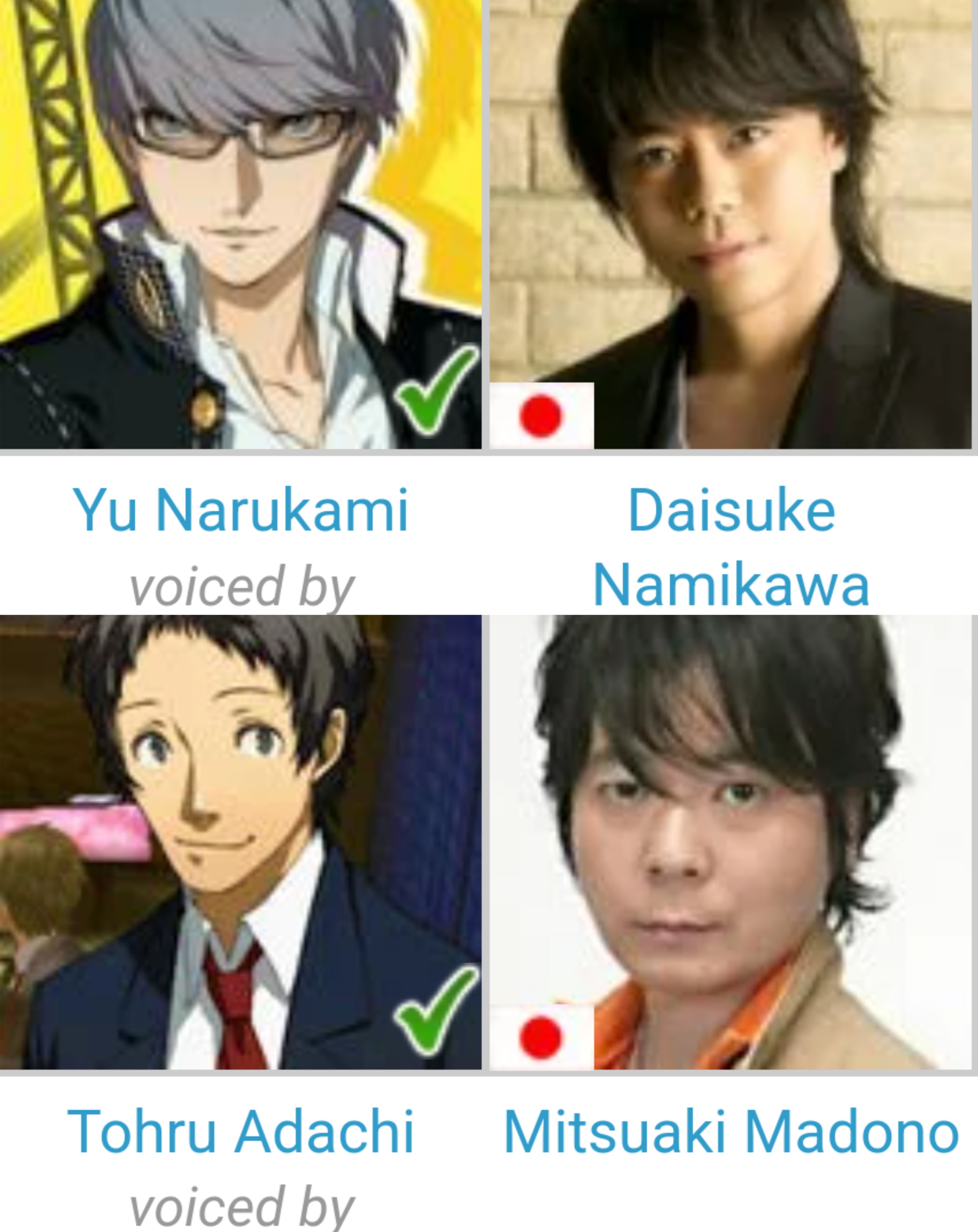 >>733755476It kind of works in P3 because of how the antagonist ties in to the protag, but it's bizarre in 4 because Namatame doesn't also share the same voice actor.