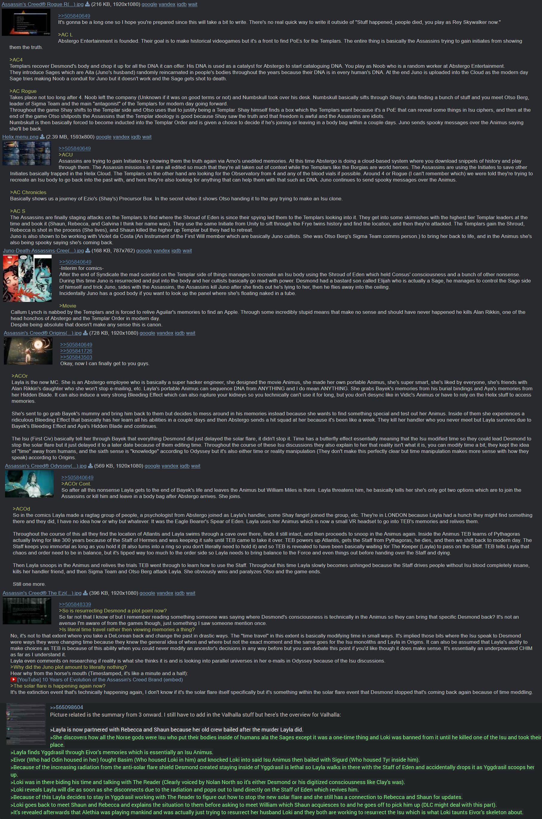 >>733764442You do you man, that's just incredibly boring to me.>>733764662>Did the ancient aliens plot go anywhere?They're not aliens and yes. I haven't done a writeup of Shadows' Modern Day yet but Shadows is basically just about Abstergo making an AI that goes rogue and you're some rando syncing Naoe and Yasuke's memories who gets wrapped up in it.