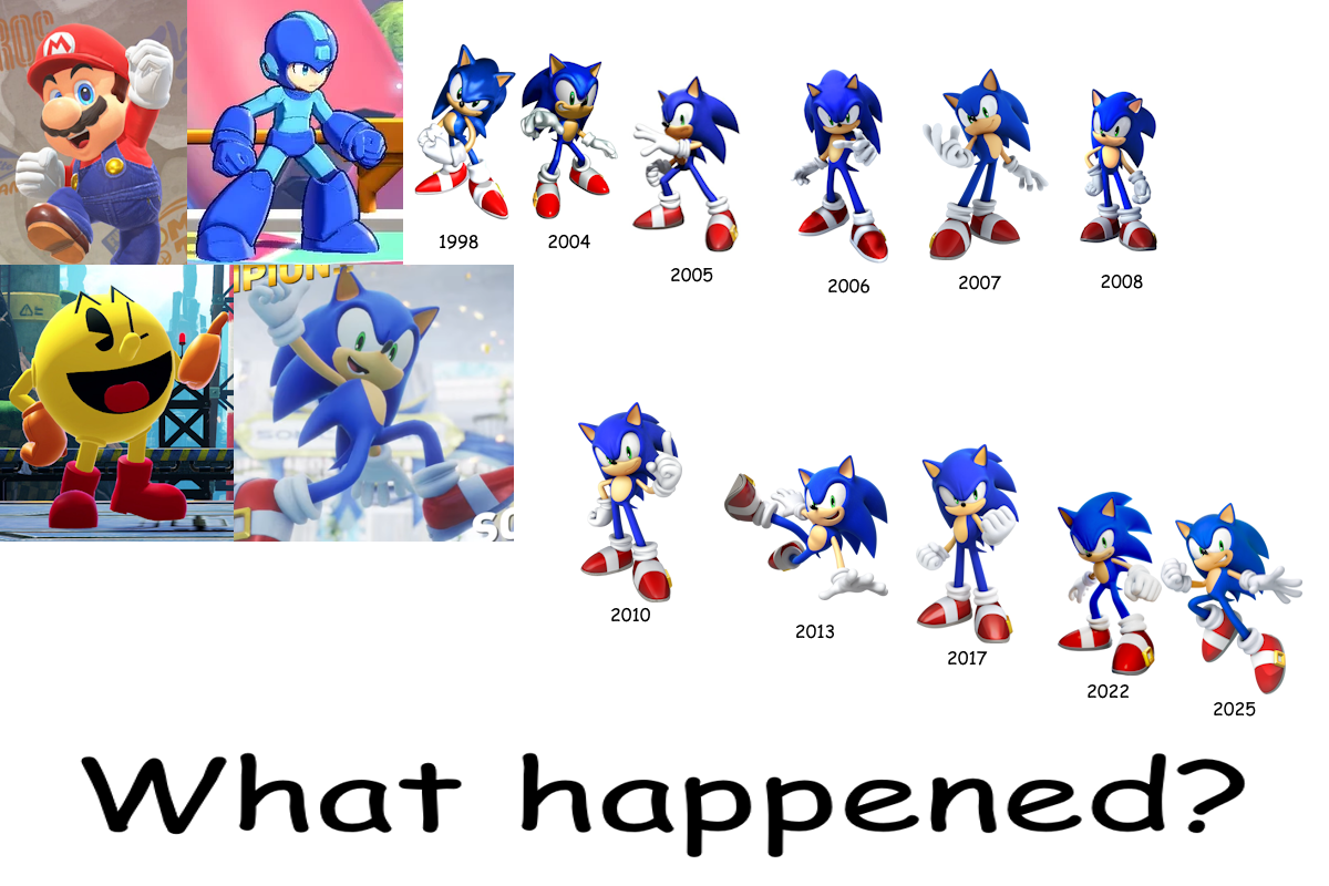 >>733760542Even back then Sonic was one of the best designs for a kids game character, pointy edges = coolAerodynamic shape = fastbright colors = youthBig readable eyes and features = people with autism like itStinky feet = boner