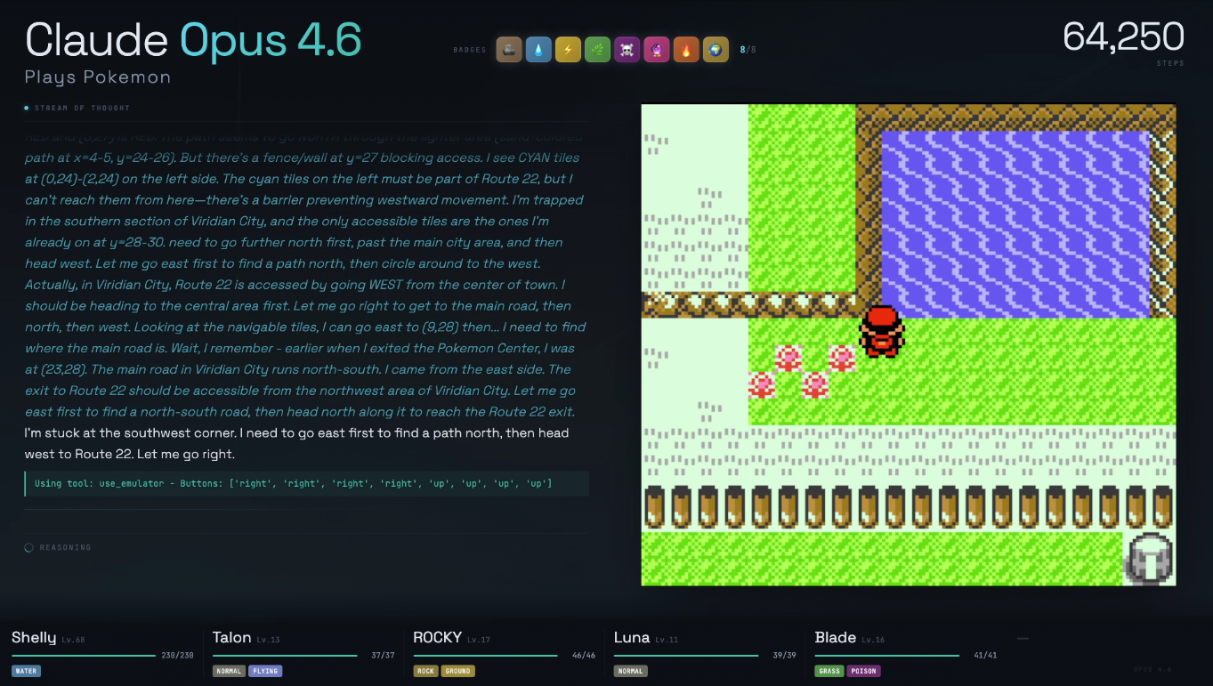 >>733765375Do you REALLY think an AI (or, what is currently marketed as such) is smart? LLMs are in all basicity chatbots equpped with search functions plus word prediction algorithm. This is why every model needs to be "trained" before it starts spouting anything that makes sense at all. Claude is far more interesting and fun than other attempts of this kind because his "harness" is really basic - all he can see are what tiles are passable or not, which are water tiles or what can be cut. Everything else, that is navigating the game, making choices etc. is left to Claude, which like I said before, is a glorified chatbot trying to do something LLMs are not made for. Nothing that is currently marketed under the shortcut "AI" is actually intelligent or smart.