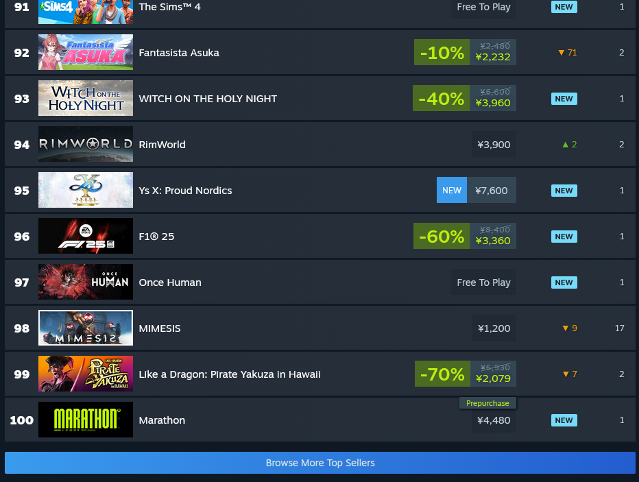 >>733770146Yeah most likely.https://store.steampowered.com/charts/topselling/global
