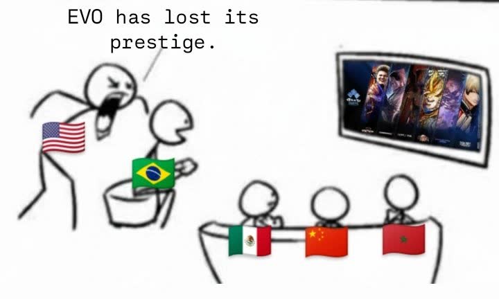 >>733771449EVO was on a downhill trajectory the moment they pulled classic street fighter from the main line up. 4 great games pulled so we could have MK and anime slop. >>733771708anime fags should of lost their spot first
