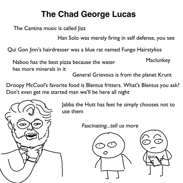 >>733789086george didn’t write those things, eu writers didstop praising him for things he didn’t do, you guys are like the opposite version of the OT fans that deny most of his influence