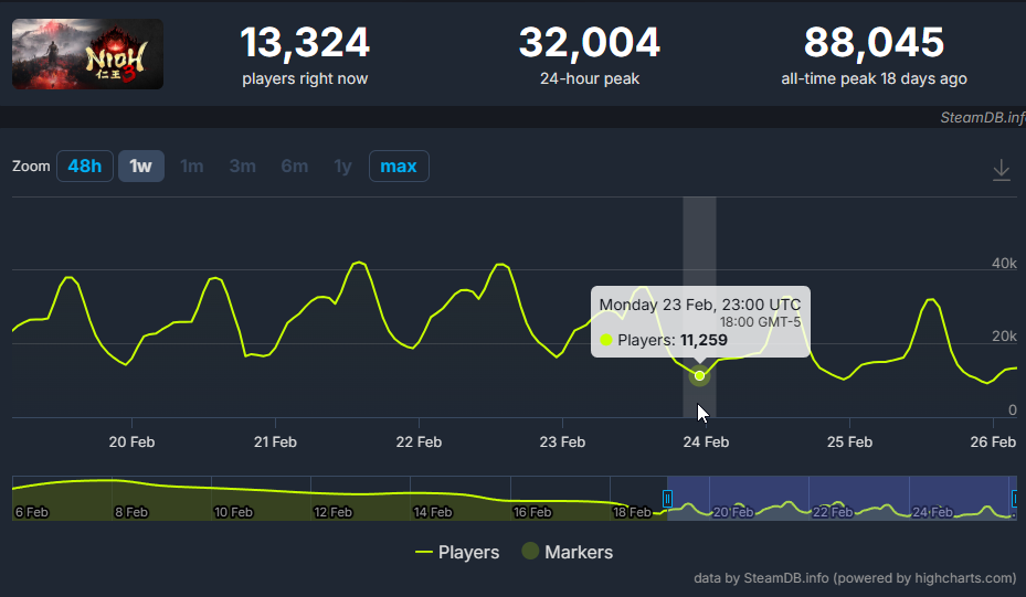 >>733787326Wo Long mogs Nioh 3 so hard it ain't even funny>Only ~10k less peak players despite being free on Gamepass day 1 (would have had much more peak players if it wasn't)>Probably much smaller development budget - Nioh 3 credits are 12 minutes long, Wo Long's are 5 minutes, which is shorter than Expedition 33>Chad mission-based structure vs soicuck virgin open world slopWo Long did much more with much less budget and Nioh 3 flopped hard. They should have made Wo Long 2 instead.