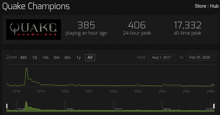 boomers will seethe at this but the only reason quake was ever popular was because it had the first mover advantagepvp arena shooter genre is completely dead nowadays because its objectively shit