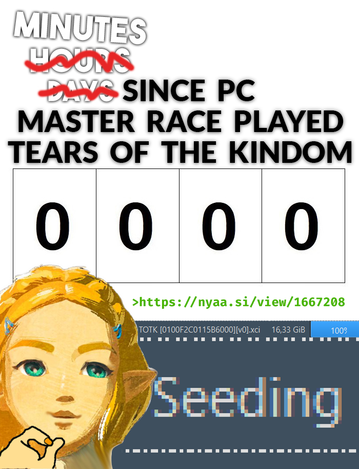 >>733810165Yeah I'm constantly seeding Zelda if you know what I mean.