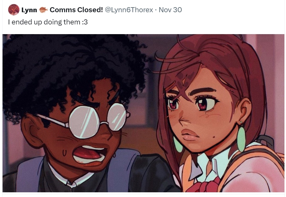 >>733823072You can thank western media for forcing black characters everywhere for no reason. Now, when someone actually wants to add a black character without any obligation or agenda, people still treat it like propaganda. Such is life. For me, this whole "drama" is fucking ridiculous and I don’t even take seriously the people who have a problem with it. The girls are cute and that’s literally all that matters
