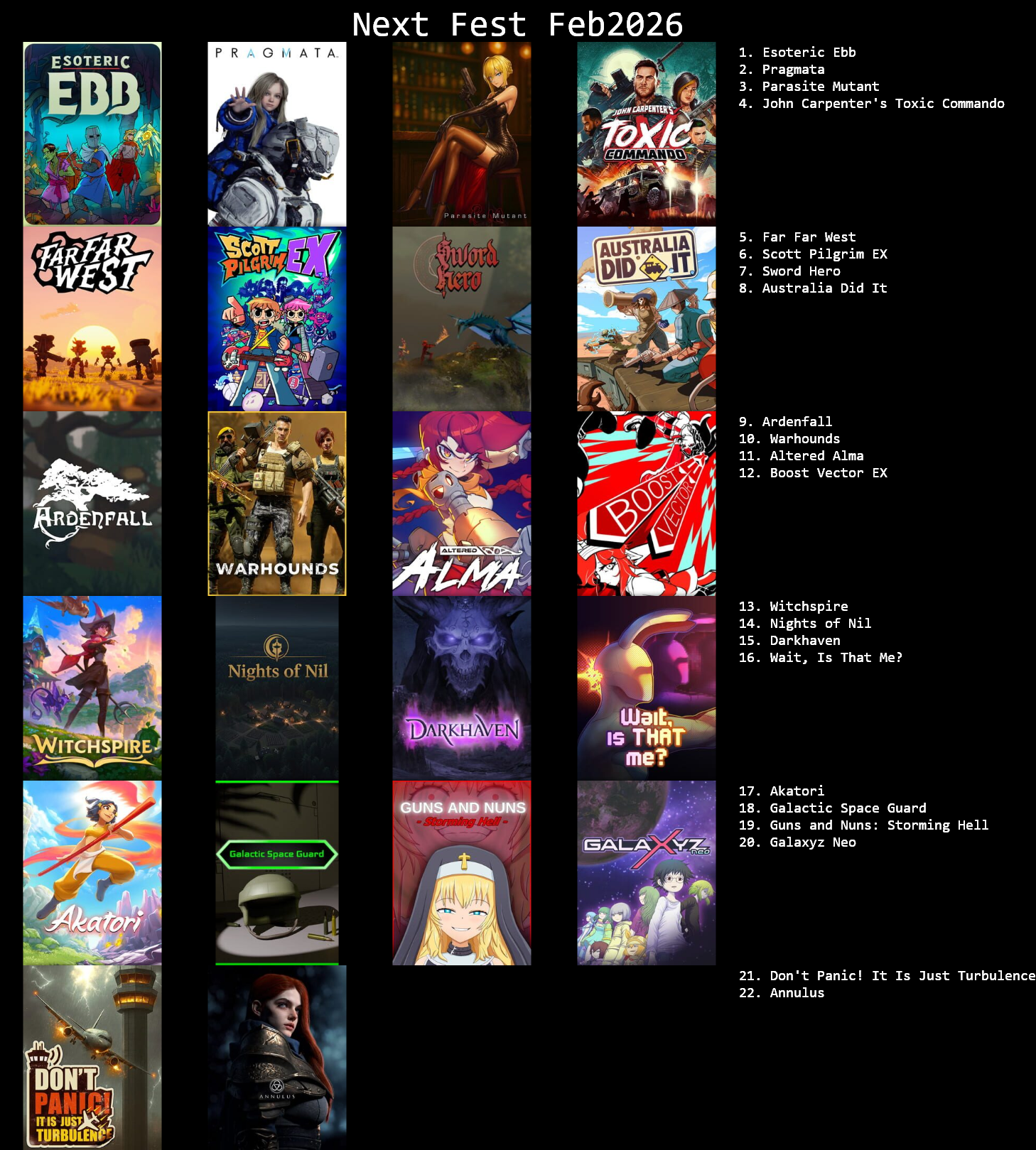 I wonder how many of these will be giga delayed because of slay the spire 2. Mewgenics already kinda stole half the thunder of the show.