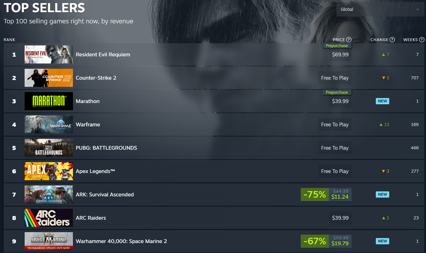 >>733848643check the steam top sellers list in the US