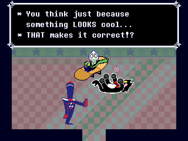 >>733871594>a spoiled punk who treats objects objects with no regardYou mean like The Knight who smashes Tenna and kills Jackenstein for literally no reason>who has been established to play with Kris using all kinds of objects while making up stories for themYou're not gonna believe this
