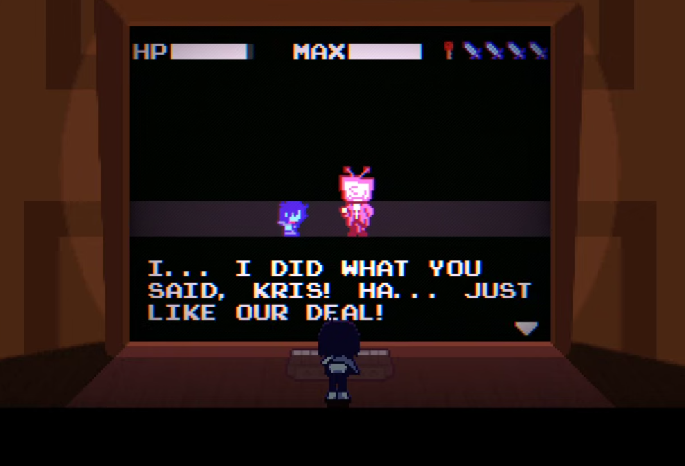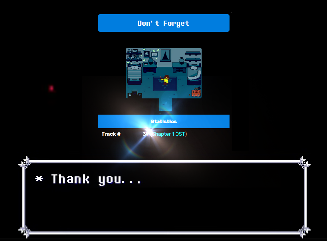 >>733878008That I'm a lot less keen on guessing. But I don't think it's a red herring. I suppose the only thing is to consider who Kris would make a promise to in the first place, so my money would be on one of the Holidays or the Knight (if it's not also one of the Holidays). One thing I literally just thought about was that it could theoretically be Toriel, since the call happens after the music stops implying that Sans has left at that point, but I think that's the least likely candidate, aside from being someone that Kris would make a promise to. Alternatively, Asgore or Asriel. Guess we'll just have to wait and see.
