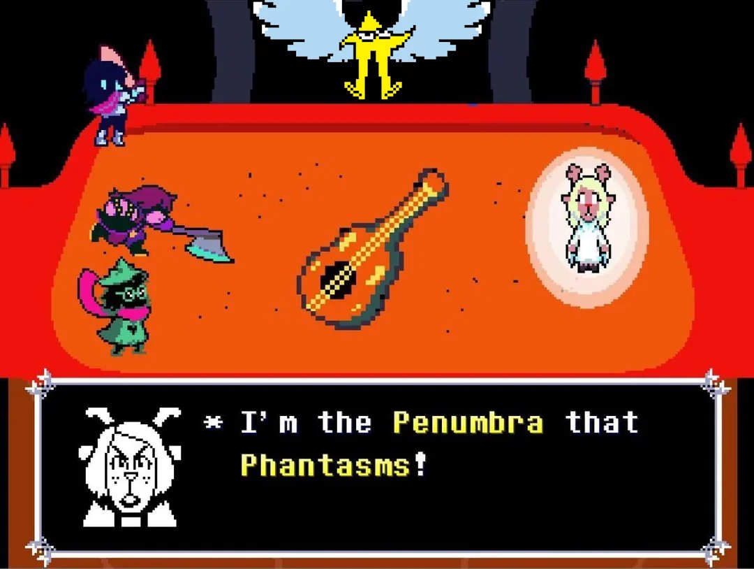 After recalibrating my Pepe Silvia boards and jumping down a few extra rabbit holes (and one doe hole) I present you with my NEW unified master schizo Deltarune theory!>The identity of the main antagonist is not yet revealed. It's no one we know thus far, but someone who will be introduced in chapter 5. We won't know their true identity until chapter 6 though.>The Knight is Asriel. He has an important mission to fulfil, though is reluctant to don the armor. He based the look of the armor off of someone who gave him strength when he was younger. There are backdoors in the dark world that Asriel discovered when he, Dess and Kris had adventures there when they were younger. Noelle was too scared to go with them and shut it out as them playing pretend.>Kris is working with the knight tothwart the real agent of the main antagonist, Ralsei. Ralsei is lying about the prophecy, his princehood, and how the dark world works. He doesn't want to though and will be redeemed after self revealing his involvement to Susie>Dess Holidayis a big fat red herring. She "ran away" (ie. chimped out and left home) after a big fight with Carol, who may have disowned her just prior. Carol disapproved of her desire to be a musician and Dess' last words were that she would become a famous musician to prove her wrong. Noelle constantly searches the net trying to find information on Dess and her band but Dess hasn't made it big yet. She will come home in chapter 5, much to everyone's surprise.>Carol's plan has nothing to do with the dark world. The phone calls are misinterpreted by the fanbase. In the holiday house the words are all separated by ellipses (...) which is meant to imply that you can only hear some of the words being said. The blanks will be filled in during chapter 5. Kris is involved but the plot revolves around the town and their two families.cont.