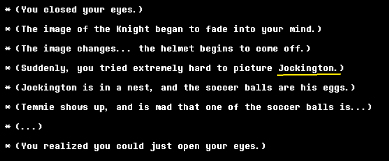 >>733866303>>733866618How? The whole point was to demonstrate how freakishly strong the Knight is that even Undyne gets thrashed. Did the Knight fight being exceedingly challenging (or an outright glass cannon fight without the shadow mantle) that most people lost in one turn not clue you in?